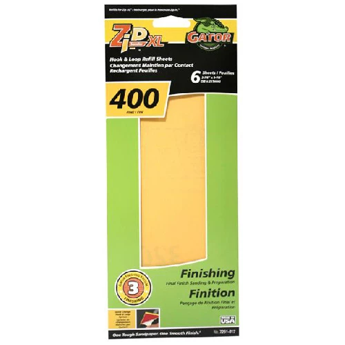 Take your finishing projects to the next level with Zip sander sandpaper. This anti-clog stearate sandpaper reduces particle build up, which improves performance. With a durable construction, this 400 grit aluminum oxide sandpaper offers fine scuffing of various surfaces. The sandpaper has a resin bonding mechanism that locks the grain to paper for a reliable performance.