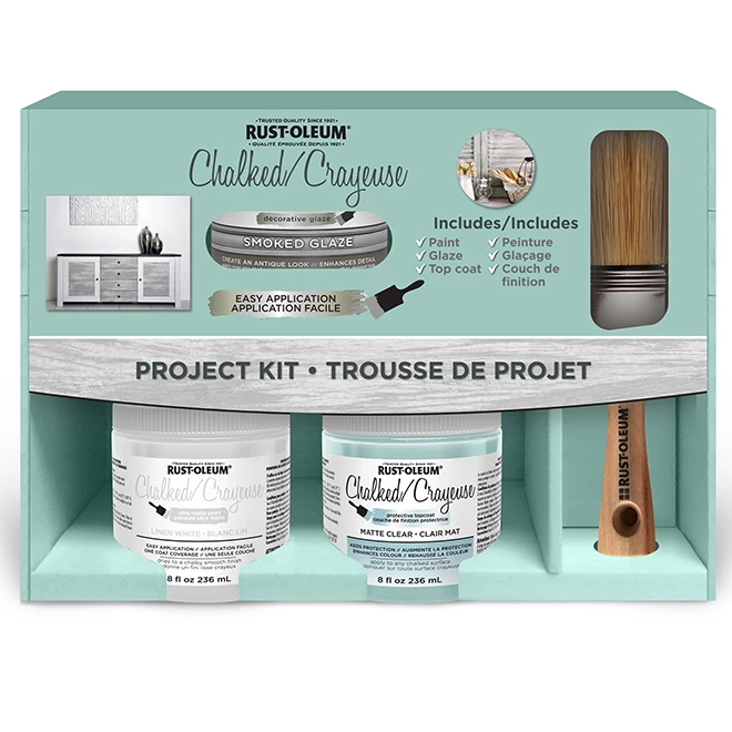 Everything you need to create a chalked finish in a few easy steps. The high quality brush provided can be used for paint, glaze, and topcoat applications.